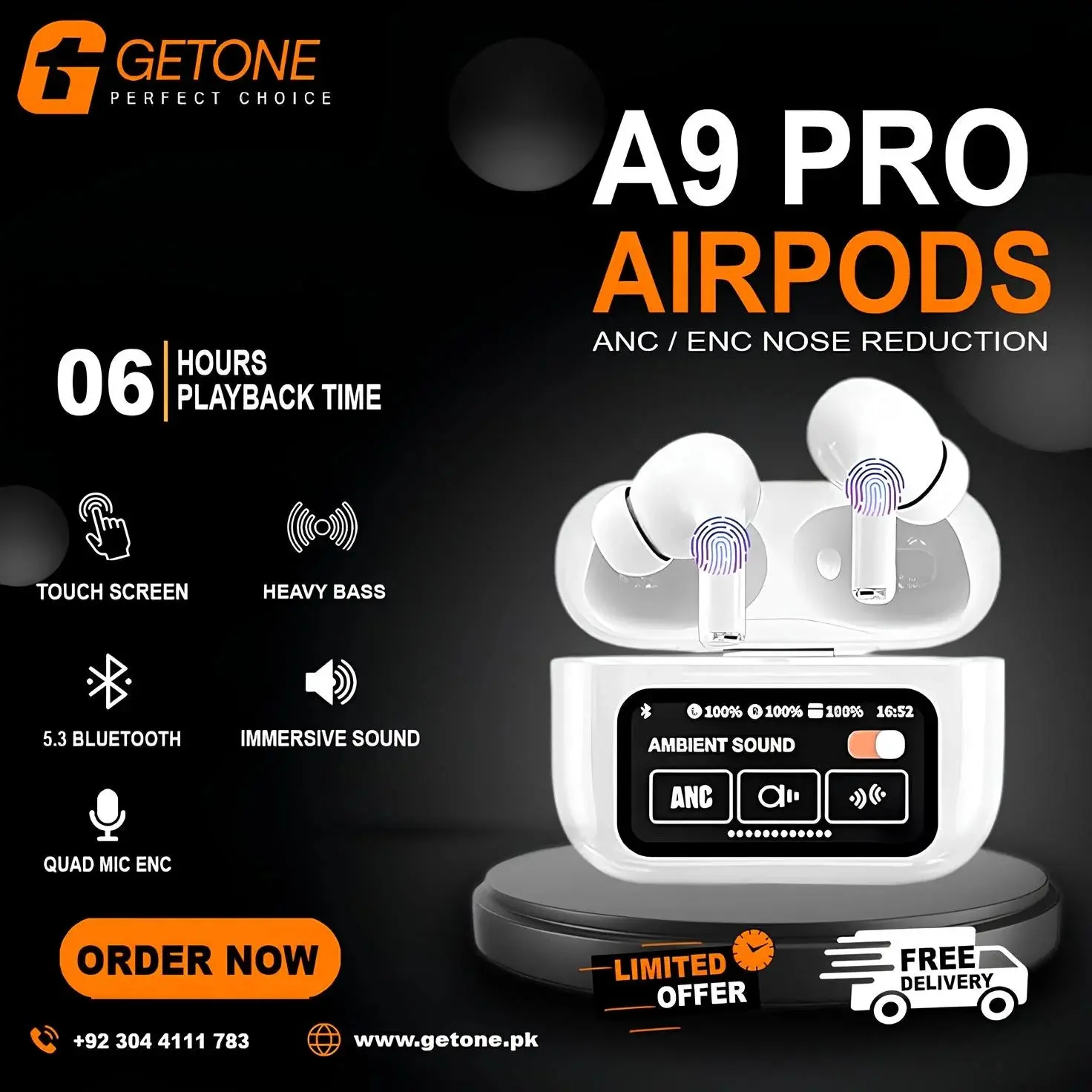 Meet SmartSound In-Ear Headphones, the perfect blend of premium sound quality, smart technology, and long-lasting comfort. A9 Pro Airpods designed for music lovers, gamers, and busy professionals, these wireless earbuds offer 360° surround sound, active noise cancellation, and a full-color LED display for effortless control—all in a stylish, pocket-friendly case.